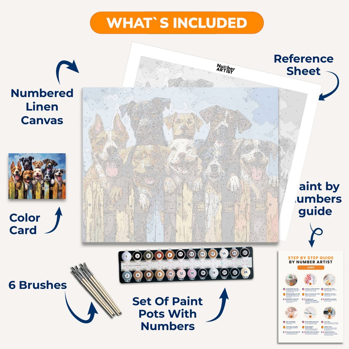 Unveil every essential neatly packed in our Paint by Numbers kit. With each component labeled and ready to use, you can focus solely on your artistic journey. From the vibrant paints to the precision brushes, we've ensured that nothing stands between you and your canvas. Suitable for both beginners and seasoned artists, this kit offers a pure, uninterrupted painting experience.