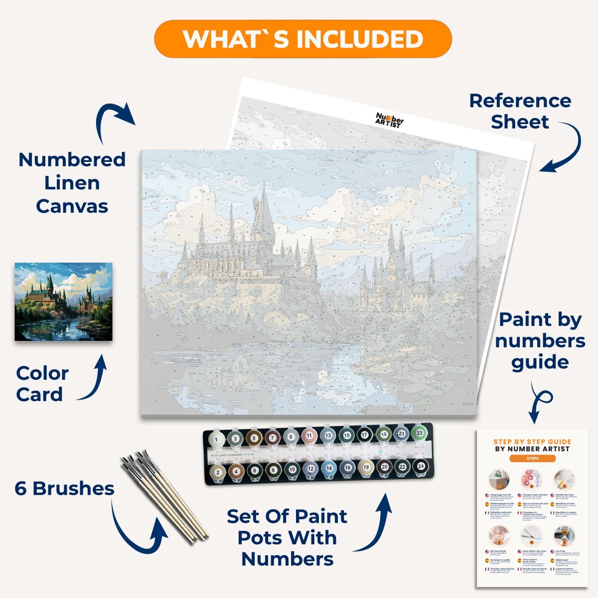 Unveil every essential neatly packed in our Paint by Numbers kit. With each component labeled and ready to use, you can focus solely on your artistic journey. From the vibrant paints to the precision brushes, we've ensured that nothing stands between you and your canvas. Suitable for both beginners and seasoned artists, this kit offers a pure, uninterrupted painting experience.