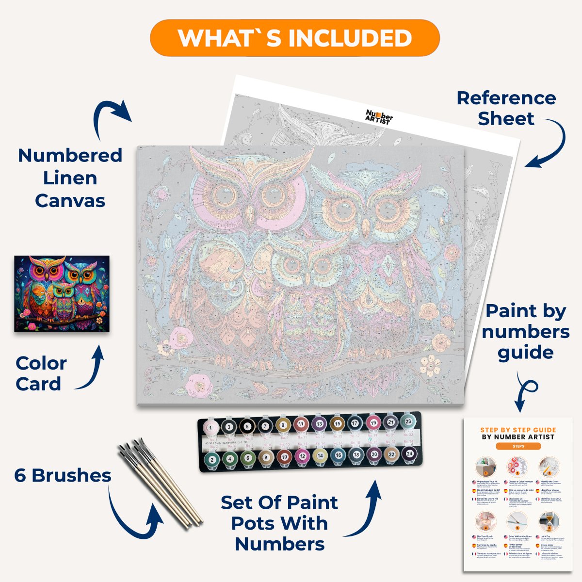 Unveil every essential neatly packed in our Paint by Numbers kit. With each component labeled and ready to use, you can focus solely on your artistic journey. From the vibrant paints to the precision brushes, we've ensured that nothing stands between you and your canvas. Suitable for both beginners and seasoned artists, this kit offers a pure, uninterrupted painting experience.